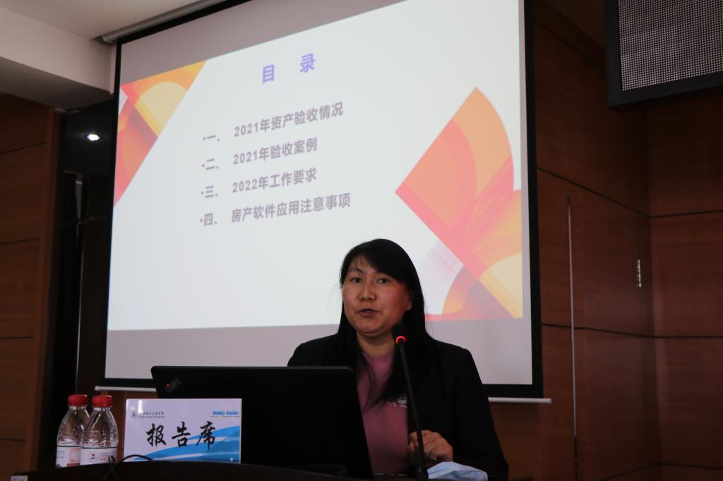 首先,资产管理处处长张磊做《2021年资产管理工作总结》,在总结2021年资产清查工作、处理处罚情况基础上,提出2022年工作目标,结合“线上审,线下核,减负增效”j9在线方法,要求高度重视资产账务信息的建设工作,及时完善账务、清理资产,做到物尽其用,库房资产不堆积,资产不闲置;落实资产三级管理模式,确保监督跟踪到位;规范资产管理工作,盘活办学资源,消除不良资产。