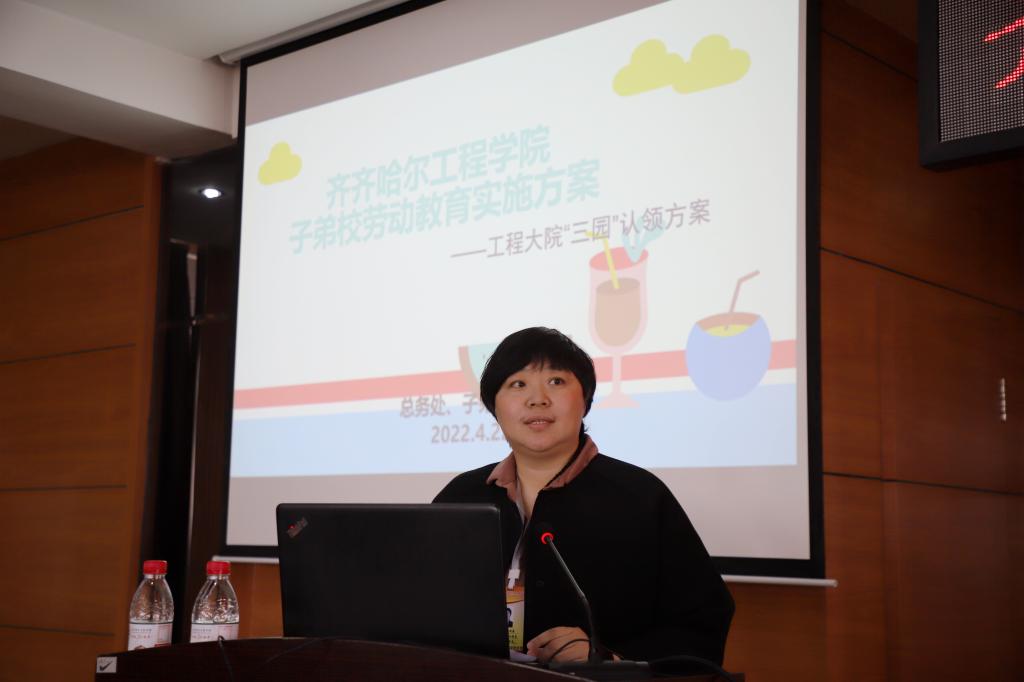 建筑工程系基层工会主席、风景园林专业负责人宋兴蕾从实施背景、基本情况、认领方案、特色拓展项目4个方面介绍了子弟学校劳动教育实施方案,并展示了《植物种植手册》。