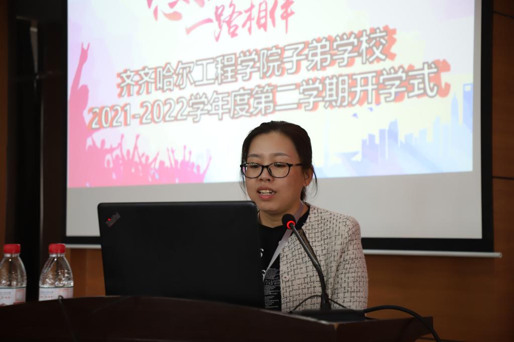 子弟学校副校长、学校创业学院副院长、学生发展中心负责人康静介绍了子弟学校2021-2022学年度第二学期的开课情况。