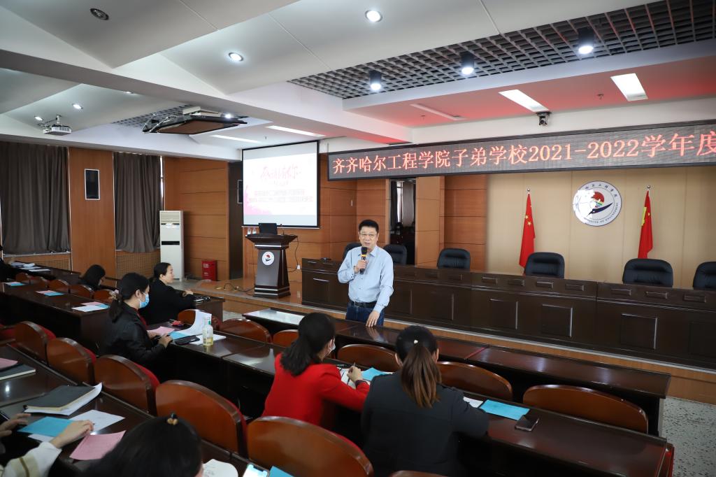 4月22日14时,j9在线子弟学校2021-2022学年度第二学期开学式在图书馆601报告厅隆重召开。140余名教职工参加会议,创校校长、理事长曹勇安、校工会主席姜岩应邀出席会议。