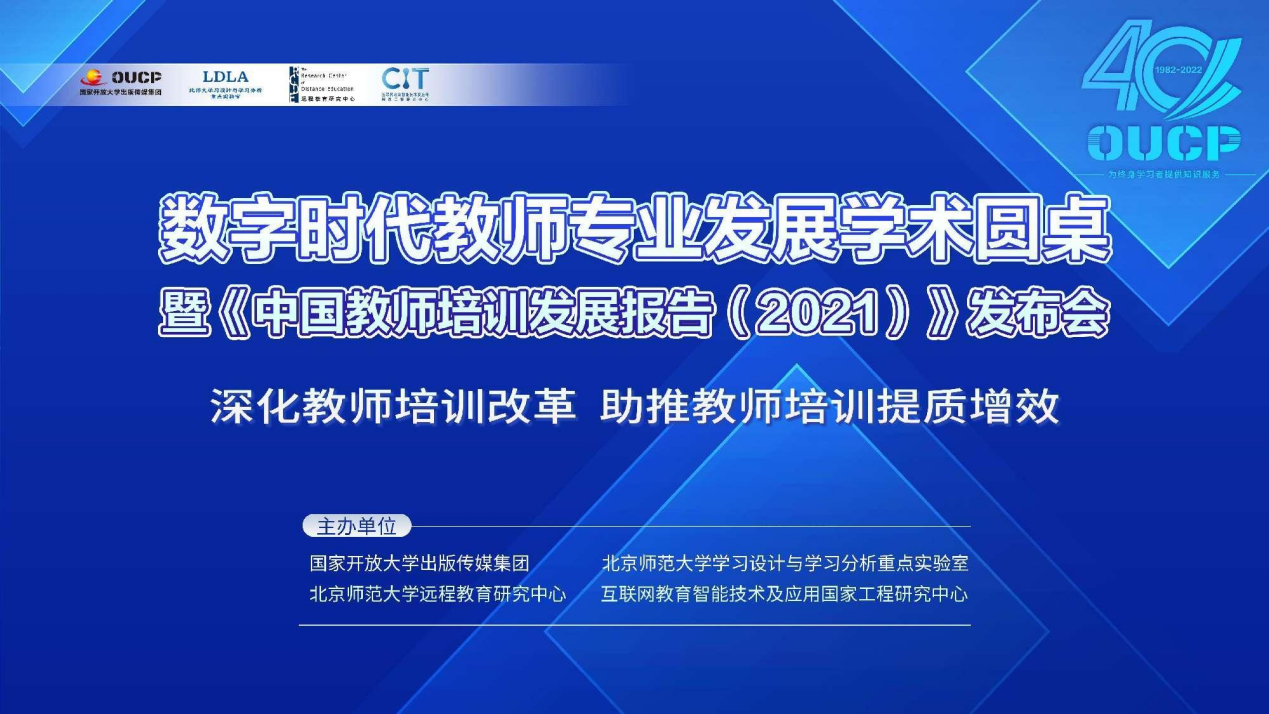6月25日,数字时代教师专业发展学术圆桌暨《中国教师培训发展报告(2021)》发布会以线上线下结合的方式召开。会议“深化教师培训改革,助推教师培训提质增效”为主题,来自教育部教师工作司、教师教育研究机构、教师发展中心、教师培训机构、一线学校等机构的领导、专家学者、校长等参加了会议。