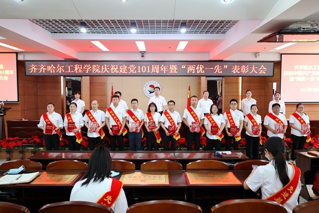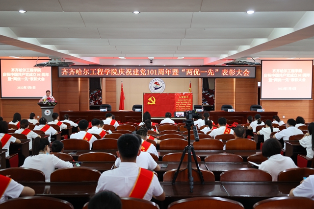 为庆祝中国共产党成立101周年,迎接党的二十大胜利召开7月1日下午,学校在图书馆601报告厅召开庆祝建党101周年暨“两优一先”表彰大会,一批在学校各项事业建设中涌现出的先进基层党组织、优秀党务工作者和优秀共产党员受到表彰奖励。学校党委书记郭伟东出席会议并讲话,会议由院长、党委副书记曹然彬主持校领导、党委委员、各党总支(直属党支部)、基层党支部的书记和委员,师生党员代表,受表彰的先进集体代表和优秀个人现场参会,其他党员线上参会。