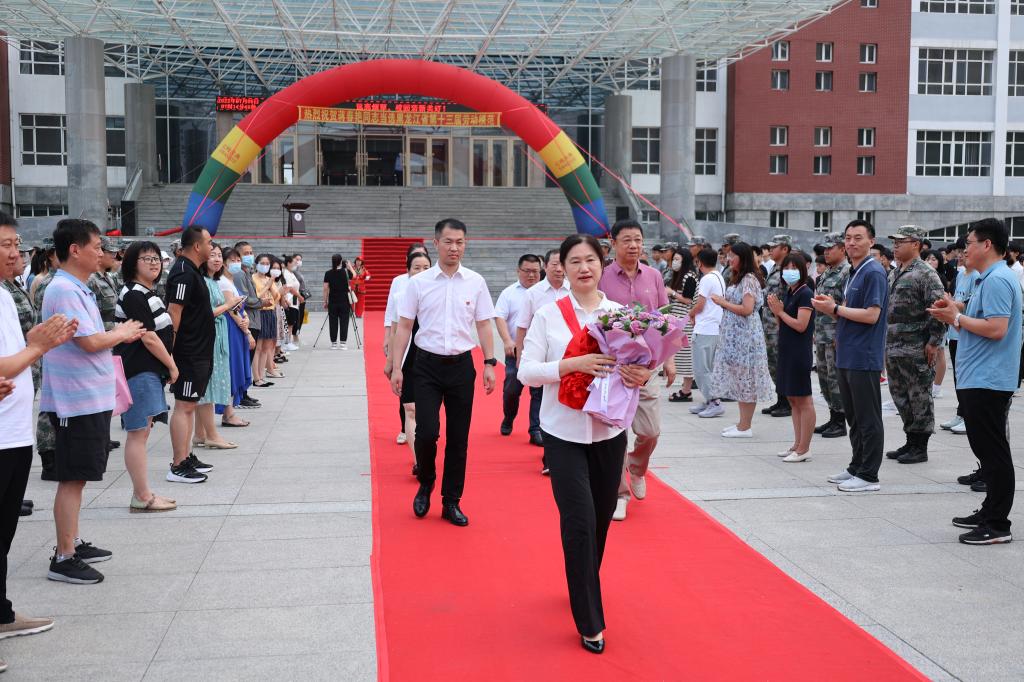 郭书记指出,学校办学31年来取得的优异成绩,得益于学校有一批默默奉献、务实求真的教师队伍。蒋春艳同志是他们当中的杰出代表,她来校工作的29年,始终以大局为重,爱岗敬业、履职尽责,在学校各个发展阶段做出了突出贡献,同时也为自己赢得了荣誉,为全体师生树立了标杆。郭书记希望,全体师生继承和发扬老一辈创业者的奋斗精神,弘扬劳模精神,向劳模学习、向榜样看齐,在全校形成尊重、学习和争当劳模的新气象。郭书记强调,全体教职员工要紧紧围绕学校中心工作,将光荣的劳模精神发扬光大,用劳模的感召力、影响力带动和激励全校师生投身工作和学习中,在实现学校高质量发展的征程中建功立业,在建设创业型大学的历史进程中铸就辉煌,以优异成绩向党的二十大献礼!