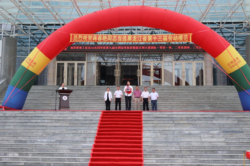 7月5日早,学校在图书馆前明德广场举行省劳模赴哈受奖欢送会。校领导曹勇安、曹然彬、郭伟东、姜岩、张振笋、白雪出席大会。学校干部、师生代表500余人参加,大会由校工会主席姜岩主持。