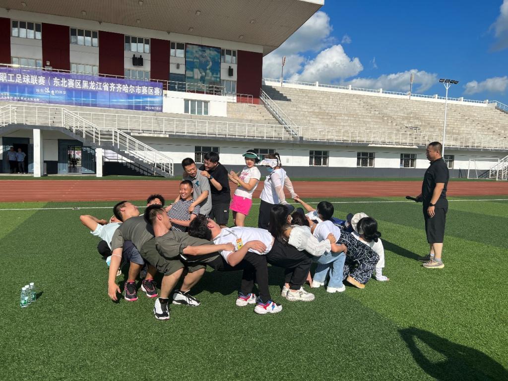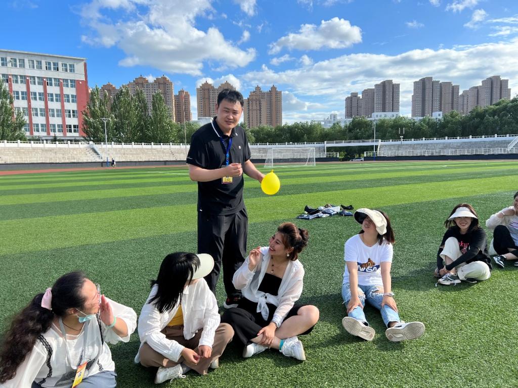 大学体育教师杨忠林带领新教师在体育场进行户外团队合作训练,通过“信任躺”、“穿针引线”、“贪吃蛇”、“数字炸弹”、趣味足球赛等活动,新教师在彼此熟悉的同时增强团队信任感和凝聚力,提高了团队协作、沟通能力。