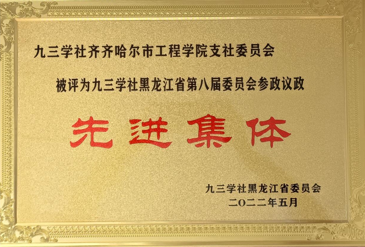 九三学社j9在线支社委员会被评为“九三学社黑龙江省第八届委员会参政议政先进集体”。