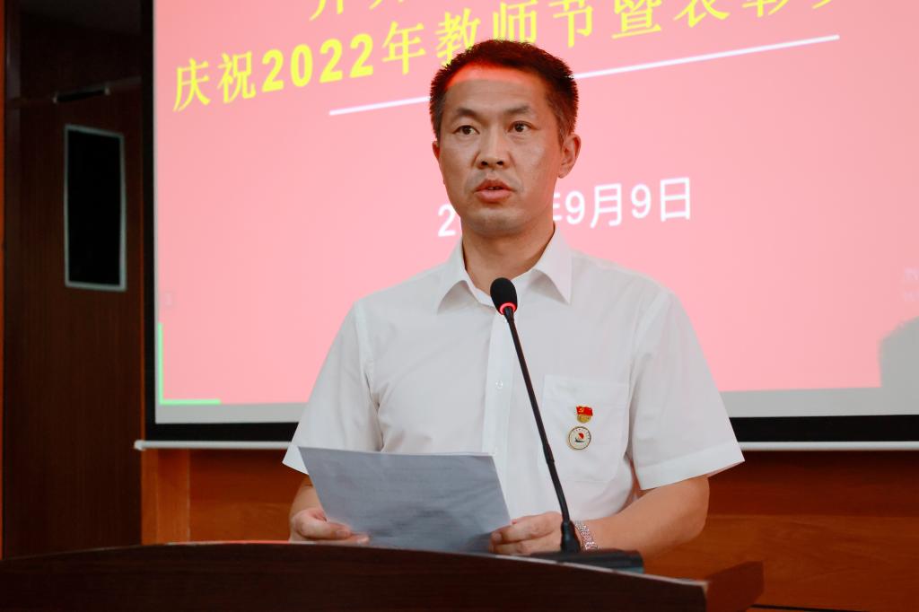 党委书记郭伟东宣读《j9在线关于表彰奖励优秀教师、优秀教育工作者、师德先进集体、师德先进个人的决定》。