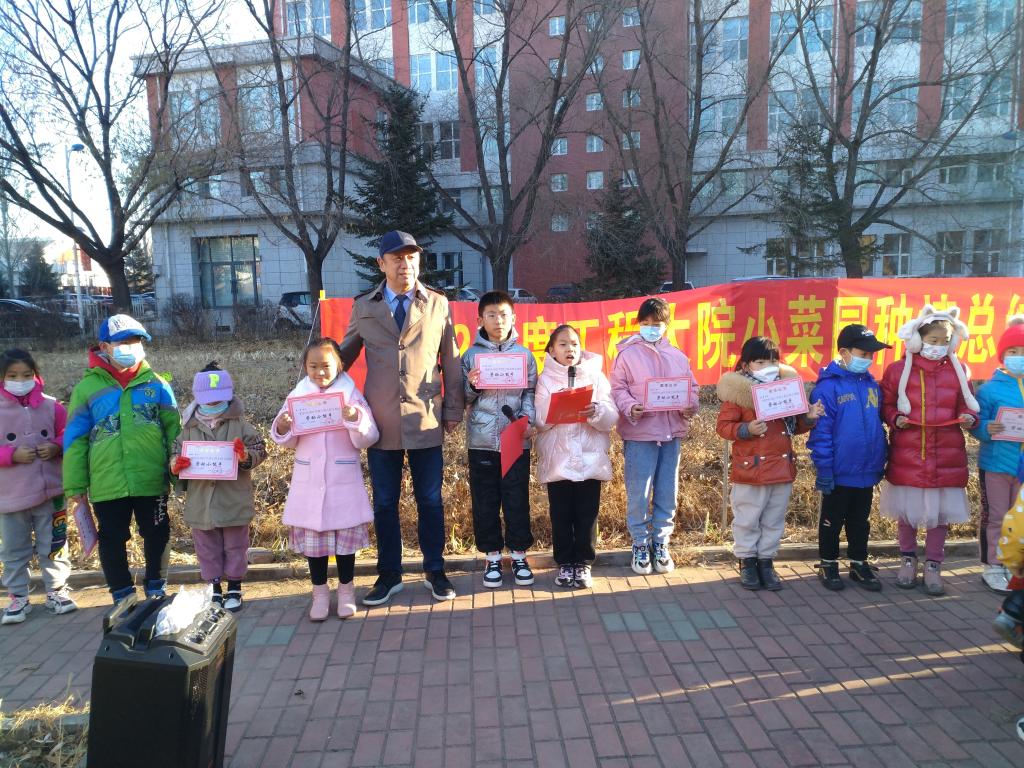宋赞小朋友分享了在小菜园里从春播、夏种到秋收所感受到的劳动快乐和收获喜悦。她说:“劳动光荣,劳动最美。我常常看到小菜园里一派繁忙的劳动景象,家长们交流着种地体会,小朋友们参与着劳动锻炼……经过春天的播种,夏天的成长,秋天的收获,我们的生活与小菜园融为了一体。现在已是初冬,很高兴参加小菜园整地活动,我们一起为明年加油!我骄傲,我感恩,我是工程学院的孩子。在此,特别感谢校长爷爷,为我们开辟了一块劳动乐园,教导我们从小热爱劳动,树立正确劳动观,培养良好劳动品质。同时,感谢学校工会及时周到的服务。”