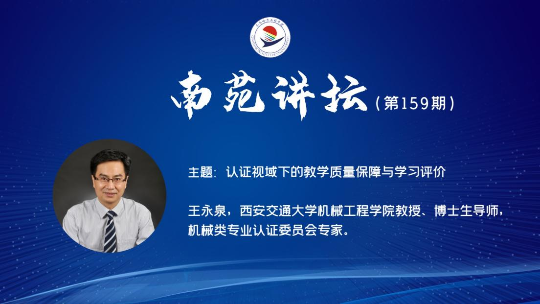 11月15日下午,学校第159期南苑讲坛如期举行,西安交通大学王永泉教授应邀作《认证视域下的教学质量保障与学习评价》专题讲座。学校全体教师在线收听收看,教师发展中心主任潘宇主持。