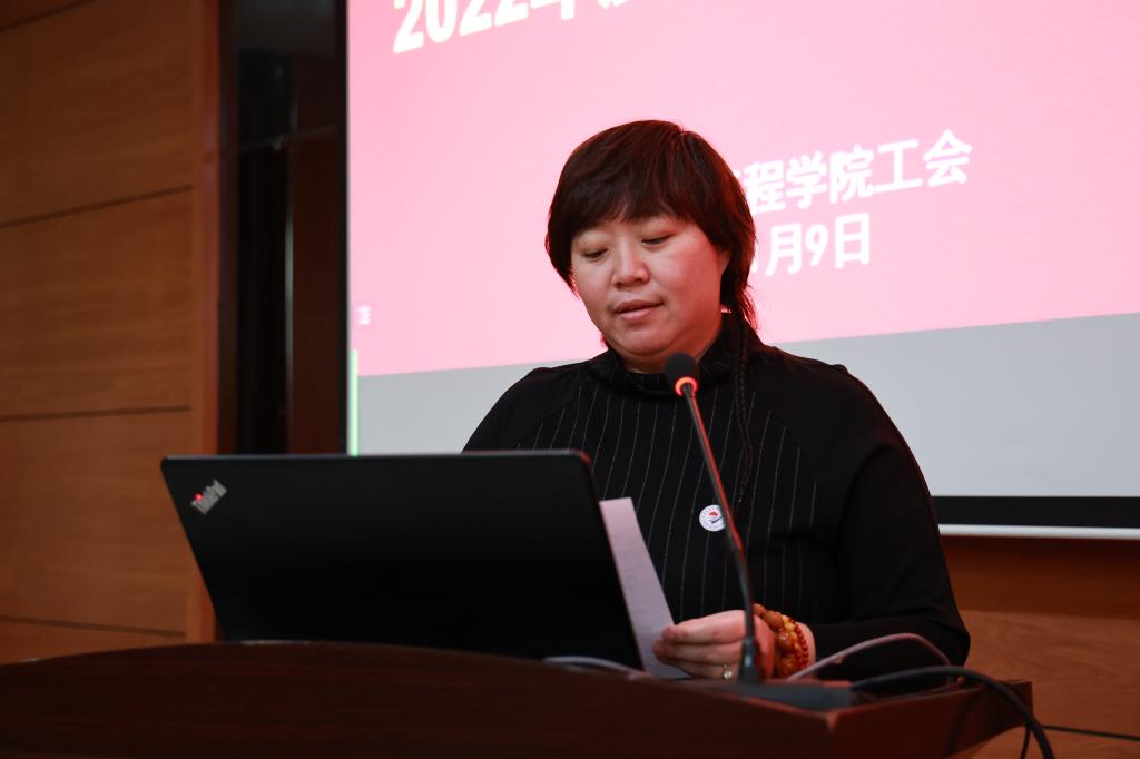 星级基层工会获得者、建筑工程系基层工会主席宋兴蕾代表获奖集体和优秀个人发言。