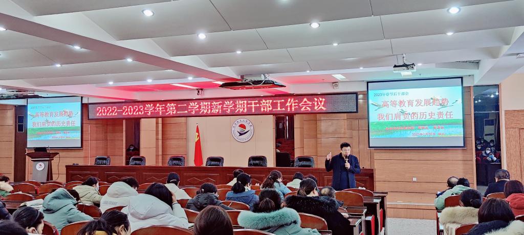 1月30日上午,学校在图书馆601报告厅召开2022-2023学年第二学期新学期干部工作会议。理事长曹勇安出席,校领导及全体干部参加。