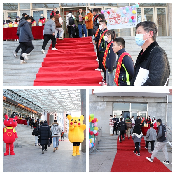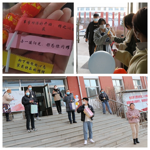 二教门前,音乐响起,彩色气球烘托着欢迎的气氛,管理与建筑工程系领导和老师们站在台阶处为同学们发放棒棒糖,每一枚上都附带小纸条,内容特别励志——“事半功倍好开始,持之以恒必收获” “丢下休闲和懒散,振作精神闯书海”“每一缕阳光都为你闪耀”……