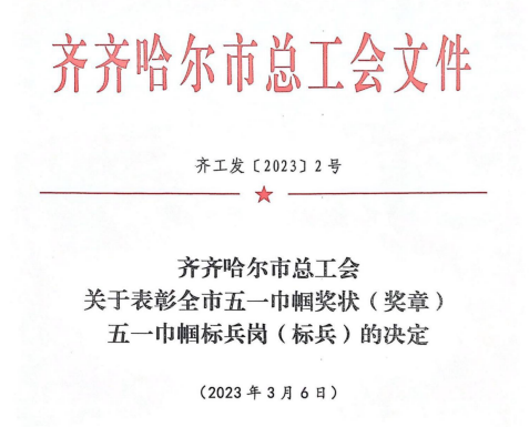 3月6日,齐齐哈尔市总工会发布了“表彰全市五一巾帼奖状(奖章)和五一巾帼标兵岗(标兵)的决定”,我校健康与护理系负责人郭玲玲、全面质量管理办公室主任孟艳辉获得五一巾帼标兵荣誉称号,健康与护理系获得五一巾帼标兵岗荣誉称号。
