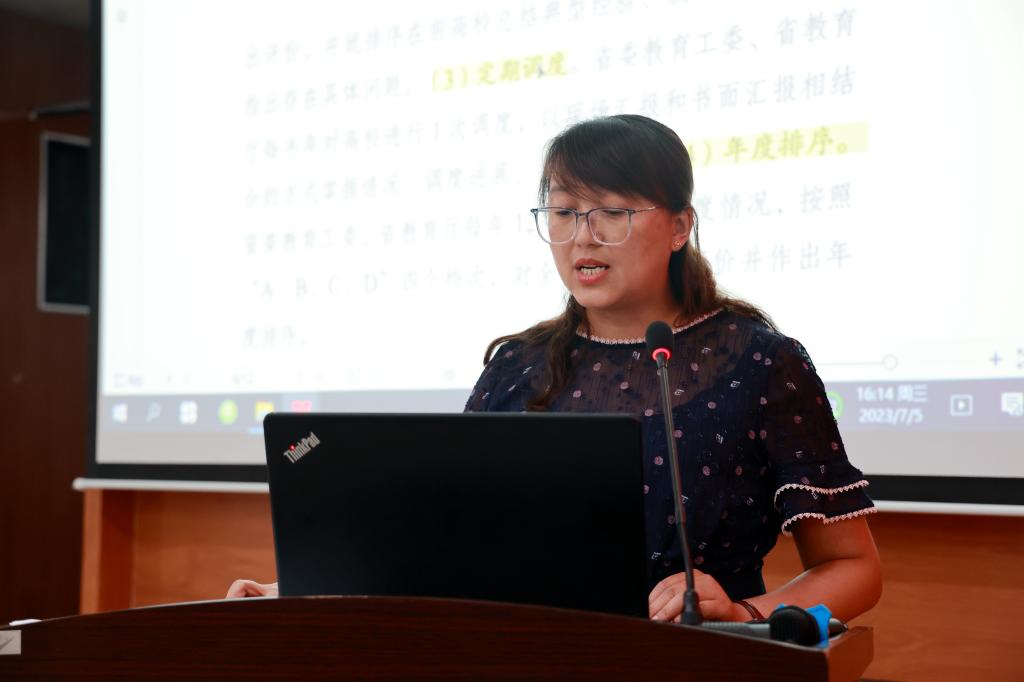 全面质量管理办公室主任孟艳辉对我校2023年度高质量发展自评自建工作方案、2023年j9在线高质量发展增值性评价任务分解表、2023年本科高校高质量发展增值性评价指标观测点进行了部署和说明。