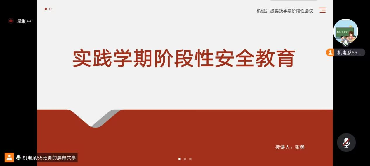 张勇老师在会议中详细讲解了安全生产基础知识,和生产过程中的注意事项,要求学生在工作中严格按照各项安全管理制度和操作规程作业,在实习岗位上要服从安全员指导,一定要按照操作规程进行工作,有触电危险的地方不要靠近,要把安全放在第一位。