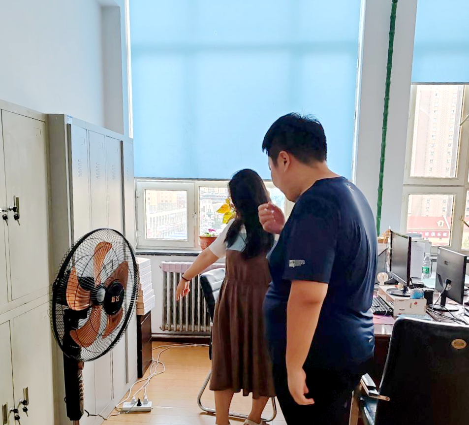教学副主任甄彩霞和教师宁裕对办公室的安全用电进行了检查,检查发现无重大安全隐患,对细节上存在的小瑕疵及时整改,以保障安全。
