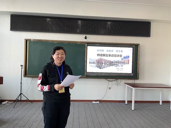 最后,矫健老师分享了身边故事,与大家一起学习王丹教授关心爱护学生、遵守学术规范典型案例,让大家清醒地认识到教师是立校之本,师德是教育之魂。同时也认识到爱生如子的态度在教育教学中的重要性,对待学生要用耐心和细心去教育,让学生感受到老师的爱和关怀,才能够在学校这个大家庭里健康成长。