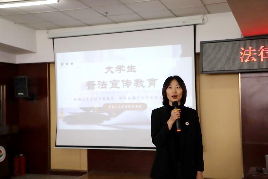 讲座开始顾问团队孔祥辉律师系统介绍了普法的意义,告诫大学生在学习生活中要有主动提高法律常识的意识,遵守学校的规章制度,步入社会要争做一名尊法、守法、懂法、用法的公民。