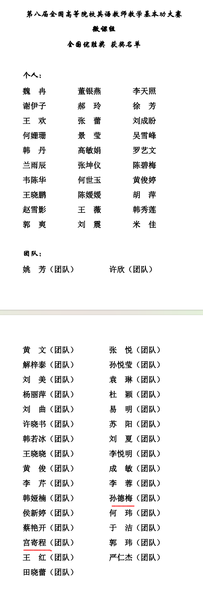 在外研社“教学之星”大赛上,基础部大学外语教研室教师孙德梅、刘双丽、刘欢、李爽、赵峥光荣获三等奖;在第八届全国高等院校英语教师教学基本功大赛上,基础部大学外语教研室教师赵丹丹和曹献玲均荣获优秀课例评比•实录课省级三等奖,徐怡荣获优秀课例评比•说课省级三等奖,孙德梅和孙婷婷、宫寄程和鹿惠敏的两个教师团队均荣获优秀课例评比•微课全国优胜奖。