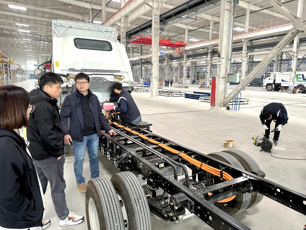 开沃新能源汽车集团股份有限公司副总经理李献环及技术中心主任田豪等人热情欢迎学校教师一行。