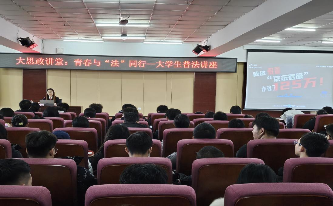 为深入学习贯彻习近平法治思想,充分发挥学校及思政课堂普法主阵地作用,增强广大学生宪法、法治意识,强化大思政课育人成效,11月25日下午,马克思主义学院举办了第三期大思政讲堂:“青春与‘法’同行”大学生普法讲座活动,邀请建华区人民法院党组成员、政治部主任郑艳玲主讲,马克思主义学院教师和2023级240名学生代表参加了本次活动。