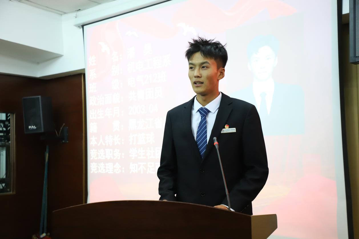 经选举,潘昊同学当选第十三届学生社团联合会主席;刘浩东、姜躍同学当选第十三届学生社团联合会副主席;郭洳彤、单思远、初雨蒙、王鑫、于嘉、宋鑫宇同学当选学生社团联合会委员。