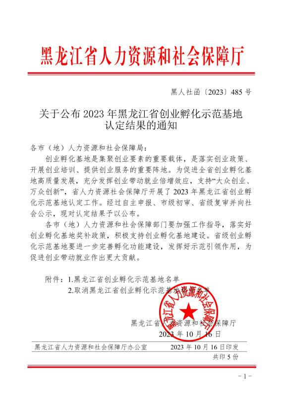 11月29日,在龙沙区人力资源与社会保障局召开黑龙江省创业孵化示范基地授牌仪式,我校科技园获此殊荣。