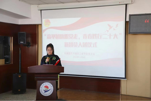 校团委指导教师张云惠代表学校团委对新发展的团员表示热烈祝贺,并对新团员提出要求。她表示,同学们有幸生活在一个伟大的时代,在这个时代里,青年肩负着重大的责任和使命,希望同学们能侧耳聆听,响应召唤,在奋进中破难题、补短板,在奋发中敢创新、求突破,争做一名优秀的共青团员,把自己锻造成堪当民族复兴大任的新一代青年。