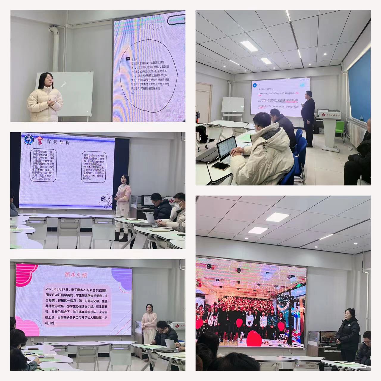健康与护理系王诺、机电工程系苏海龙、建筑工程系蔡爽、信息工程系兰天月、管理工程系史云辉老师分别以《你当像鸟飞往你的山》《因为冲动 我与学生都为自己买了单》《用真心挽救生命》《独特、魅力、绽放》《理想与现实的抉择》为题分别进行案例分享,五位辅导员分别从学生心理辅导、师生关系、空间变革等方面,以真实故事,分享了辅导员工作实践及思考。