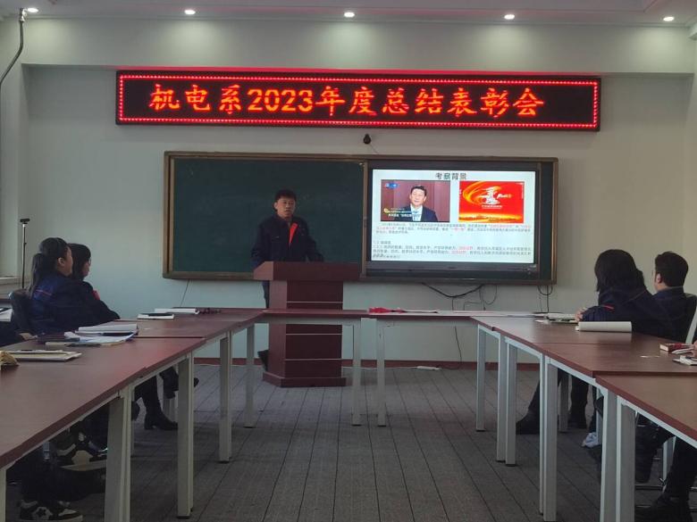 116日下午,机电工程系在图书馆608会议室召开2023年度总结表彰会,机电工程系副主任敖林喆主持会议,机电工程系全体教职工参加。