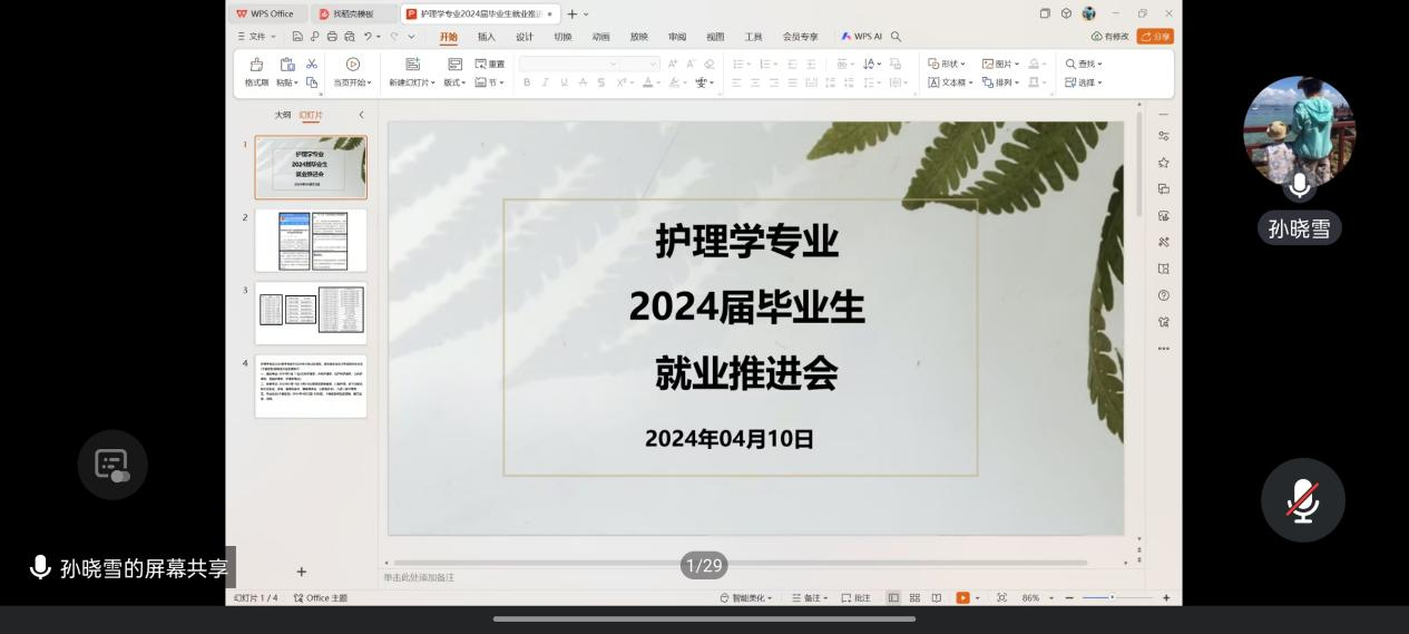 4月10日,健康与护理系护理学专业召开2024届毕业生就业工作推进会议护理学专业负责人孙晓雪主持,辅导员杨嘉琪及护理学2024届全体毕业生参加。