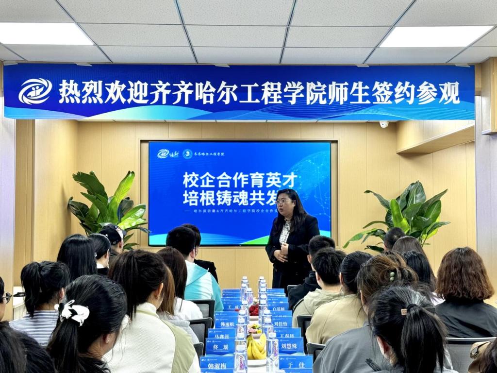 4月13日,健康与护理系健康服务与管理专业负责人毕茎娜、辅导员赵勇、通识课教师王春凤、生涯导师陈茂松、韩淑梅、王洋洋及健康服务与管理专业全体教师,带领即将在哈尔滨安驰健康管理公司实习学生,前往该公司参观交流,并举行健康产业学院共建签约仪式。