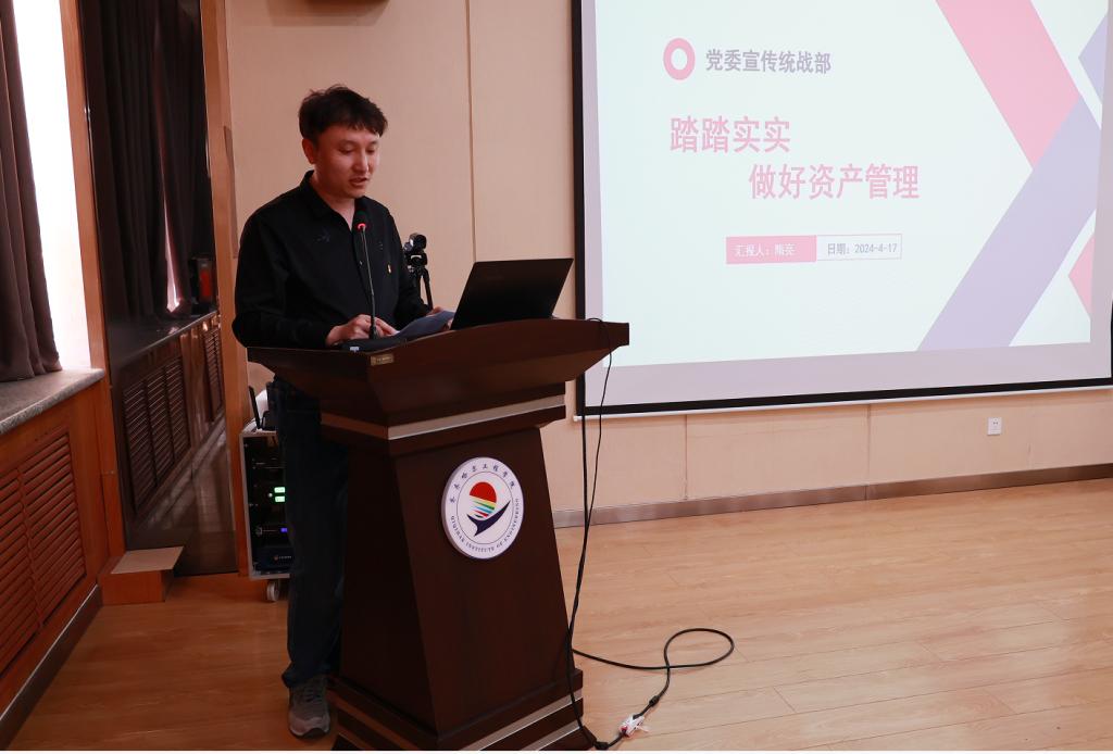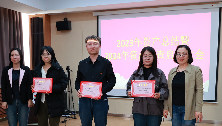 大会对在2023年资产管理工作中成绩优异的党委宣传统战部隋亮、全面质量管理办公室毛一姝、招生办公室纪莹莹进行了表彰奖励。资产员隋亮、吴凤德老师分享了工作经验。