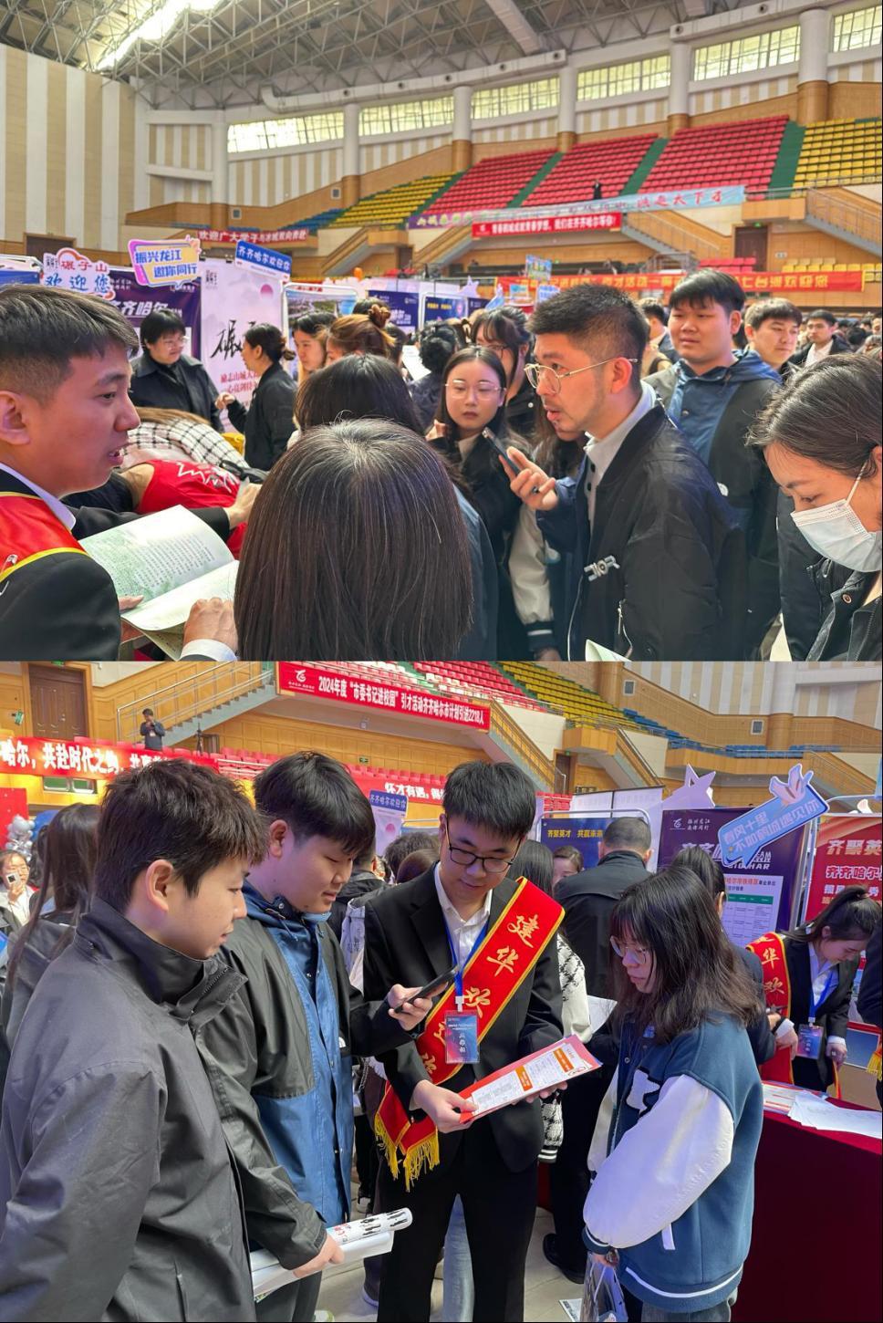 4月20日上午,黑龙江省2024年度“市委书记进校园”引才活动在齐齐哈尔大学举行,学校管理工程系老师姚明超带领即将毕业的学生共48人参加此次活动。