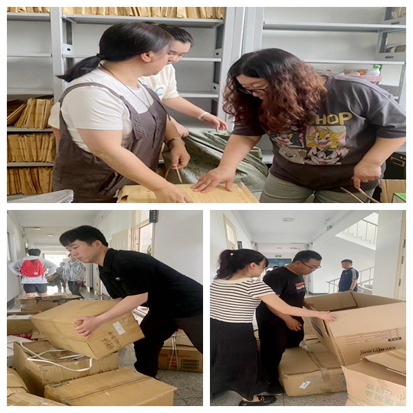 最后,党员、教师们分组进入档案室,对近三个学期基础部各学科的试卷、课程档案等材料进行分类、清理和归档。确保档案室的空间得到最充分的利用。