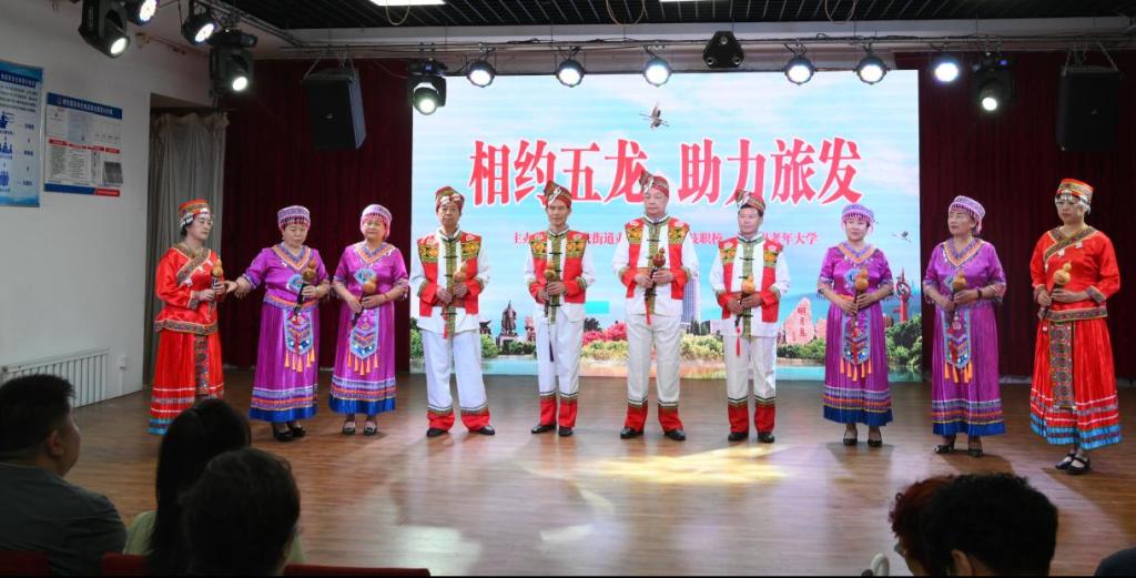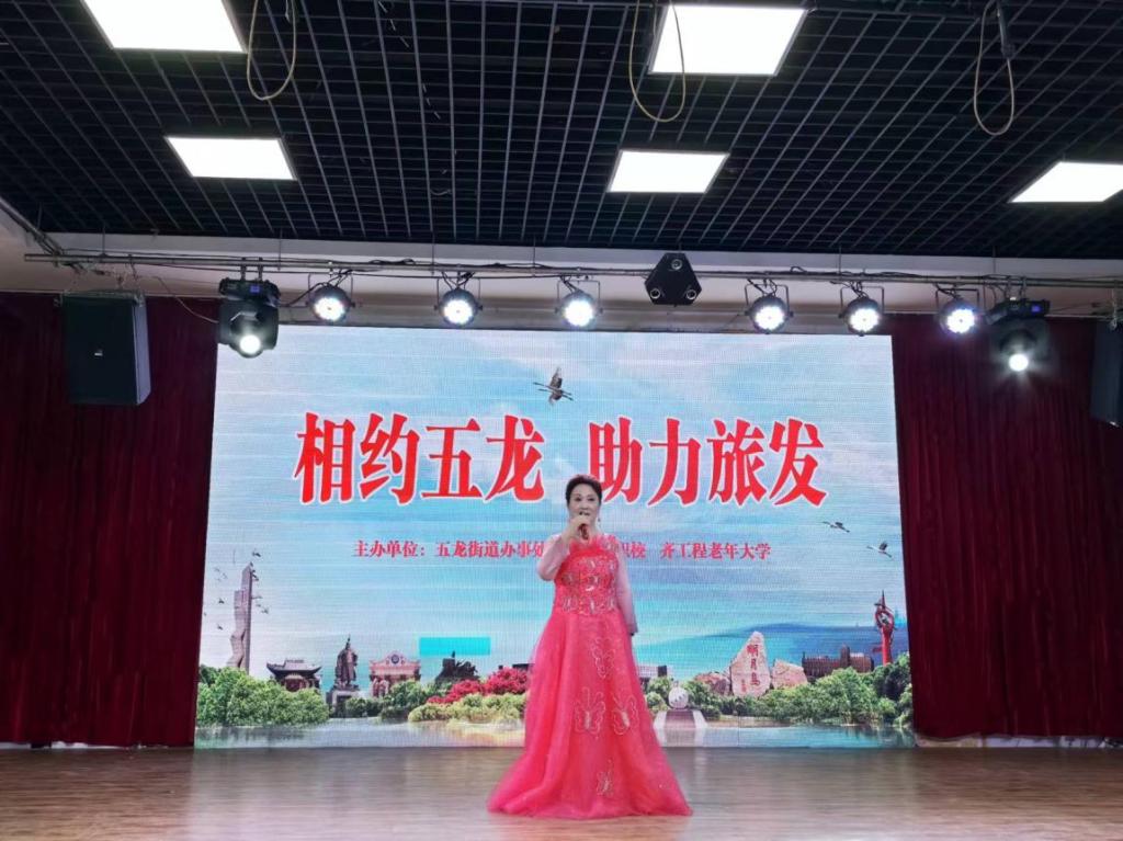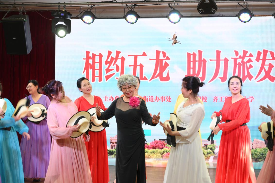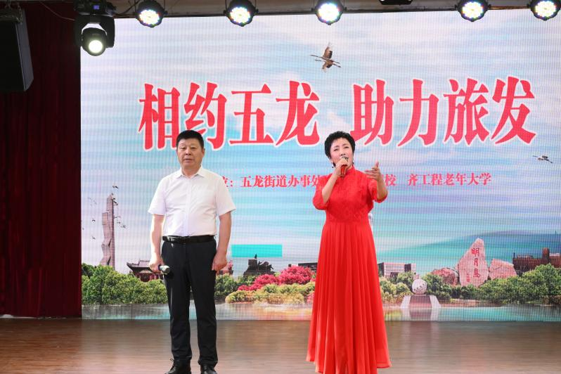 为热烈庆祝即将到来的第六届黑龙江省旅游产业发展大会,恰逢建党103周年,j9在线老年大学、东亚技职校携手五龙街道办事处于6月20日在学校北校区举办了一场“相约五龙 助力旅发”为主题的庆七一文艺汇演。老年大学学员和技职校在校学生及周边社区群众观看了演出。