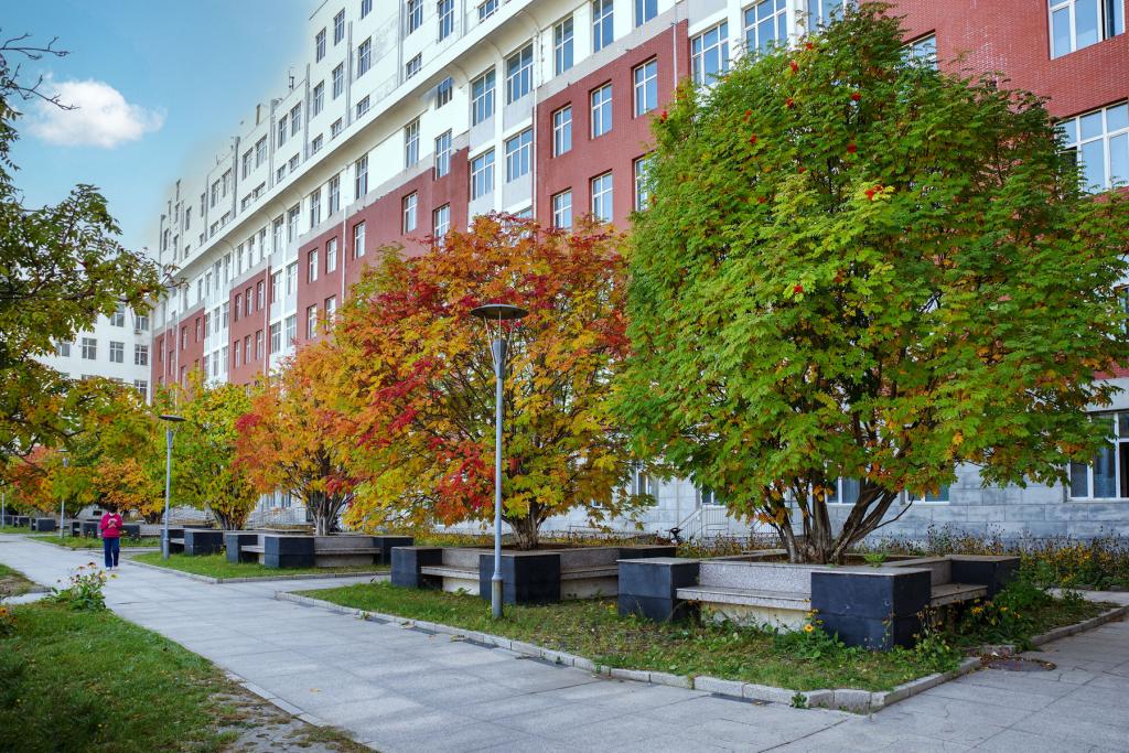 校园里花楸树的红果