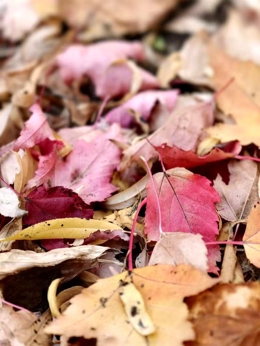 落叶,黄的如金,红的似火