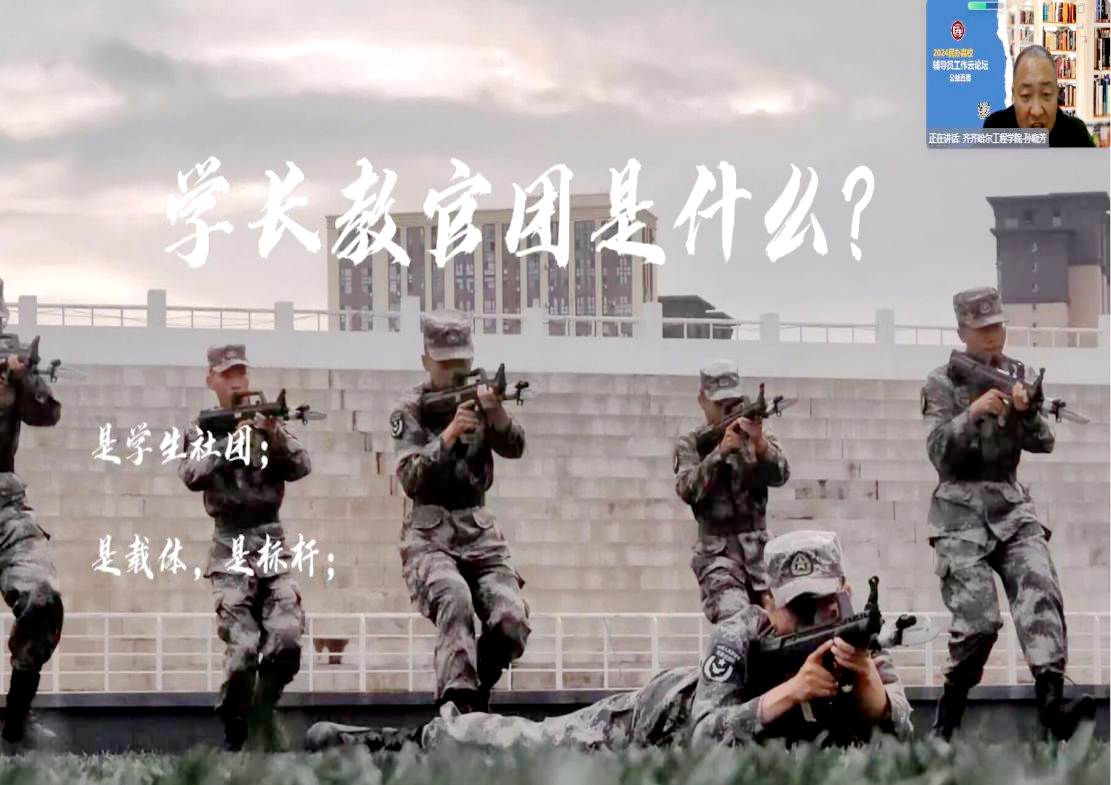 学校武装部副部长、信息工程系党总支副书记孙晓芳在云论坛中作《“亮剑”精神与学长教官团》报告,深入阐述了如何将“亮剑”精神融入学生管理和教育工作中,以及学长教官团在学生自我管理、自我服务、自我教育中的积极作用。