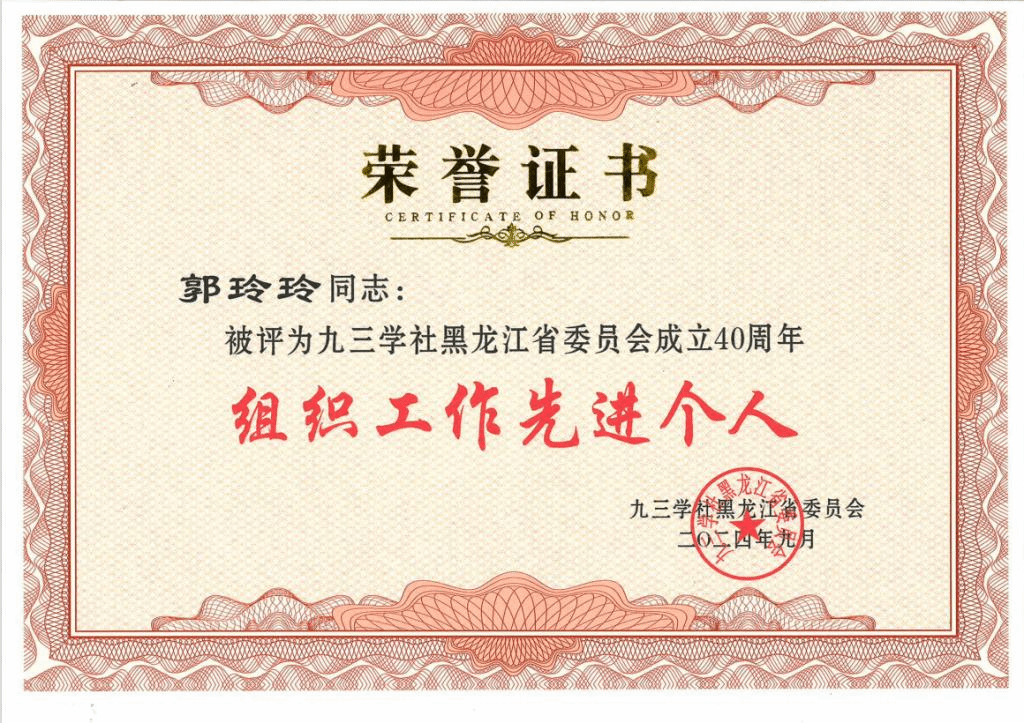 近日,为庆祝九三学社黑龙江省委员会成立40周年,激励全省各级社组织和广大社员为建设中国特色社会主义事业作出新贡献,九三学社黑龙江省委员会对2022年换届以来在组织工作、机关建设、宣传思想、社会服务、参政议政等方面表现突出的各级社组织、社员予以表彰。
