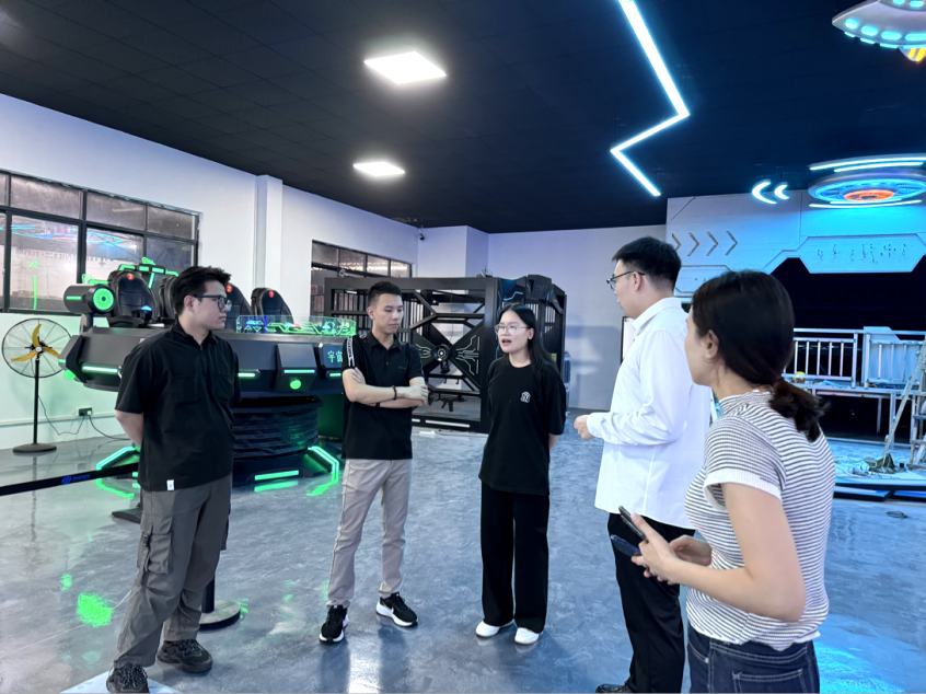 下午,考察团来到思明实业(广州)有限公司,总经理肖存对公司的产品及服务范围进行了详细介绍。随后,考察团赴蚂蚁数码娱乐有限公司,总经理喻官福详细介绍了经营模式及门店分布区域,并带领考察团亲身体验了展厅内的游玩项目。
