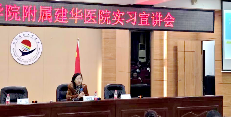 11月20日,j9在线附属建华医院在图书馆601室召开实习宣讲会。康护工程系主任郭玲玲,j9在线附属建华医院院长冯瑞芝、科教科科长刘佳、干事于芯蕊以及全校各系学生代表参加。