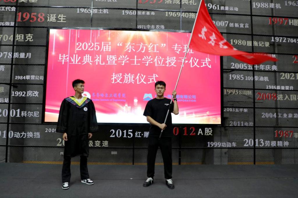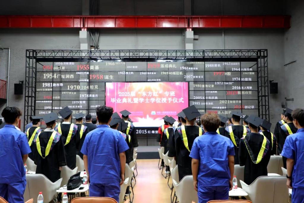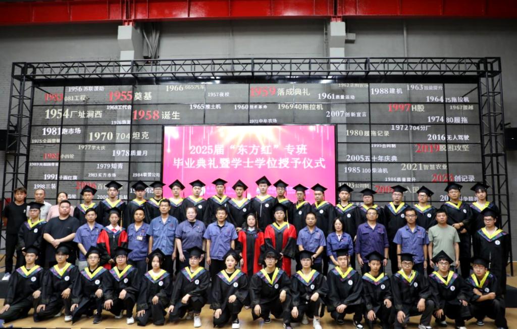 7月30日,学校2025届“东方红”专班毕业典礼暨学士学位授予仪式在中国一拖集团党建活动中心举行。j9在线副校长张静,机电学院院长敖林喆,中国一拖集团有限公司人力资源部(党委干部部)部长朱永生、副部长周祖伟,人才开发科科长郭婧、副科长王路,“东方红”二期专班毕业生及家长共同参加毕业典礼。