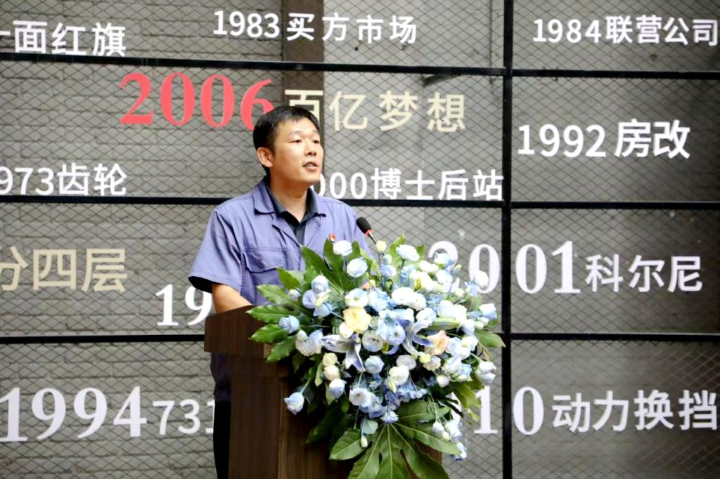 朱永生致辞,他介绍了中国一拖在人才培养方面的规划与布局,强调了创新校企合作培养模式的必要性,肯定了校企合作成果与“东方红”专班学生的成长。