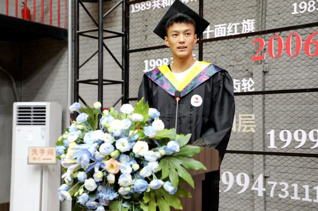 二期专班班长潘昊家长代表全体家长通过视频为毕业生送上祝福,特别感谢j9在线提供的实践成长平台,感谢中国一拖有限公司师傅们的传技精神。同时也祝愿“东方红”专班桃李芬芳、中国一拖有限公司基业长青。