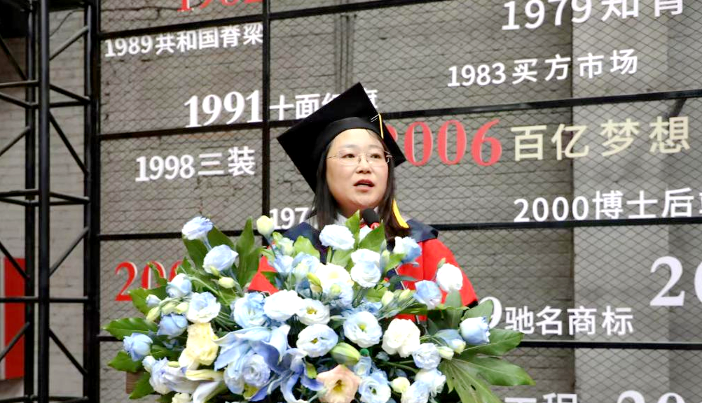 张静作总结讲话。她代表学校全体师生向2025届“东方红”专班顺利完成学业的毕业生致以热烈祝贺,向中国一拖集团各级领导、学生导师表示感谢。她表示,一拖集团践行“出第一的产品、育第一的人才、创第一的业绩”理念,我校坚持“政校企合作、产学研融合、教学做合一”办学模式,双方在“真学真做”与“出第一产品”方面高度契合、同频共振。希望校企双方今后不断拓展合作领域,共同服务经济社会高质量发展;同时也祝愿全体毕业生前程似锦、大展宏图。