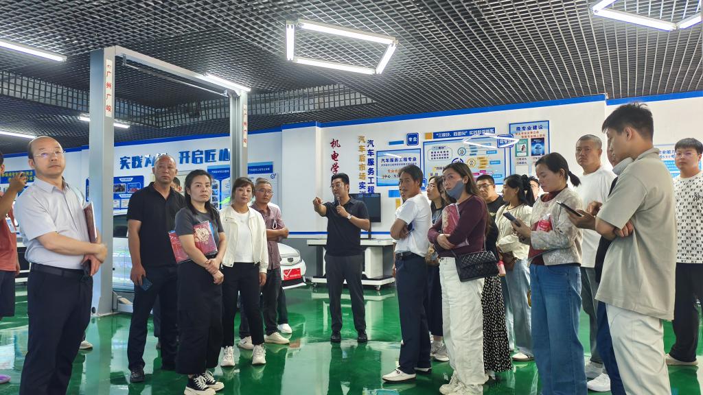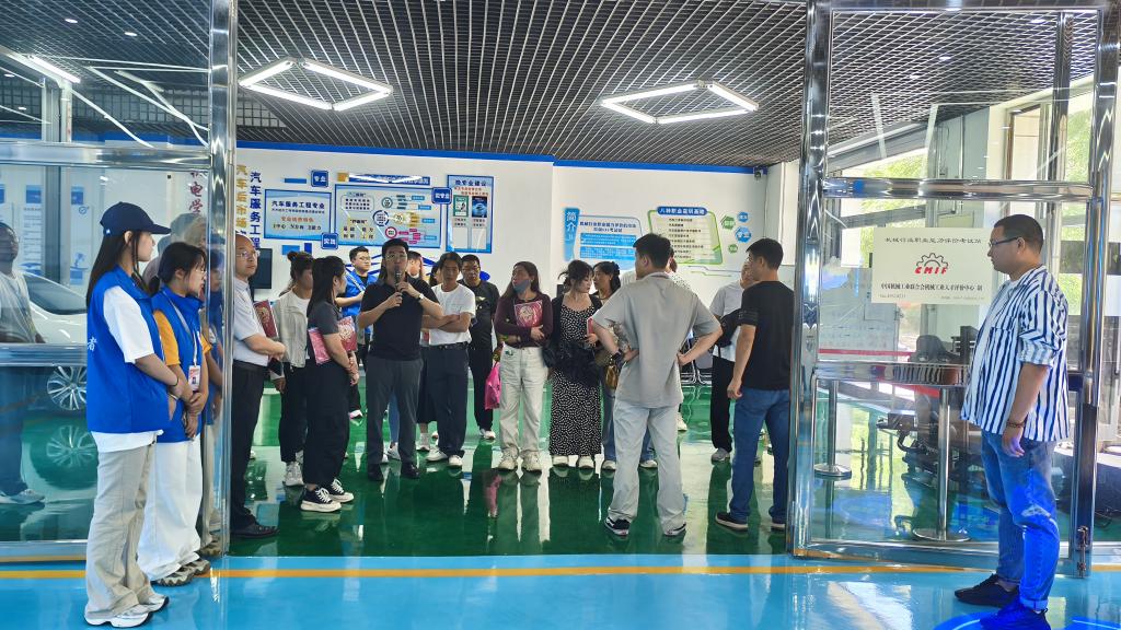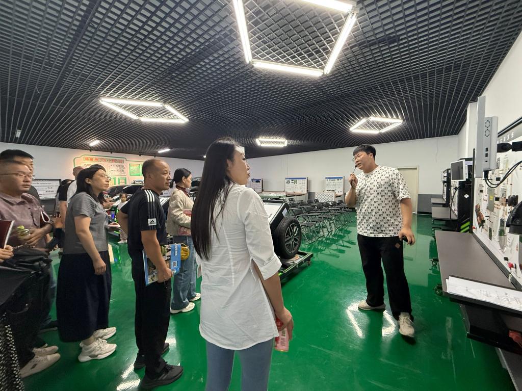 新生家长来到新能源实训中心和汽车大楼专业实验室,敖林喆和实验室老师郭兴宇分别为家长们讲解了专业实训教学场所和专业教学内容展示了学生参加课程实训、实验和专业创新技术应用等应用发展成果。