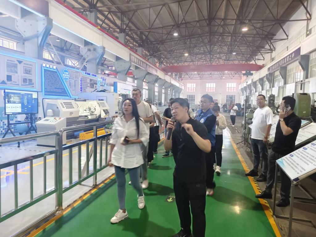 于海龙带领家长来到三机床厂,并向家长介绍了学校文化、学生成长规划等,细致地回答了家长的提问。付川川老师为家长讲解了工业2.0版本的机械制造技术发展应用并对学生参加各项学科竞赛进行了展示说明