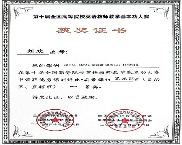 作为面向全国高校外语教师的大型公益赛事和全国规模最大的外语教师教学竞赛之一,本次大赛不仅被纳入全国普通高校教师教学发展指数,还入选了中国高等教育学会2024年重点监测的高校教师教学竞赛名单。本次赛事吸引了全国700多所高校、5000余名外语教师同台竞技,是衡量高校外语教师教学能力的重要标杆。大赛各赛项按参赛人数比例严格设奖,其中黑龙江赛区特等奖占比不超过5%,一等奖占比约10%,二等奖占比约15%,三等奖占比约20%,我校教师在高竞争强度下斩获多类奖项,彰显了扎实的教学功底。