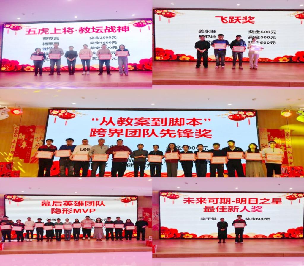 在表彰环节,现场先后颁发了“五虎上将・教坛战神”“飞跃奖”“最佳新人奖”等多个奖项,对在教学、科研等表现突出的先进个人与优秀团队予以表彰。这份荣誉既是对奋斗者的肯定,也是对全体同仁砥砺前行的有力激励。